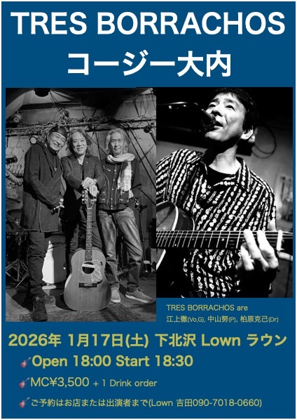 『TRES BORACHOS/コージー大内』 open 18:00 start 18:30 |