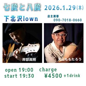 『七段と八段』 出演:丸山ももたろう/岸部眞明 open 19:00 start 19:30 |