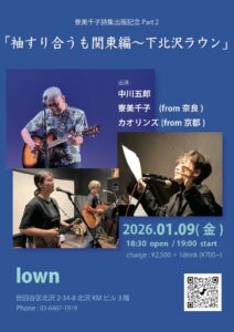 『中川五郎/寮美千子/カオリンズ』 open 18:30 start 19:00 |