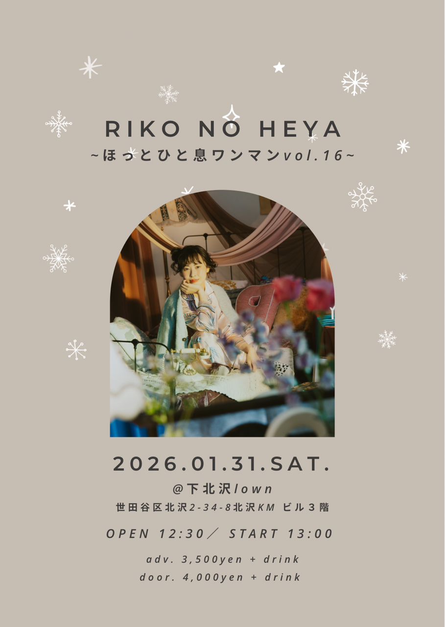 『RIKO NO HEYA』 出演:RIKO open 12:30 start 13:00 ーーーーーーーーーー 1月31日 (土)夜の部 『玲瓏のHydrangea”BIRTH”After Party』 open 18:00 start 18:30 |