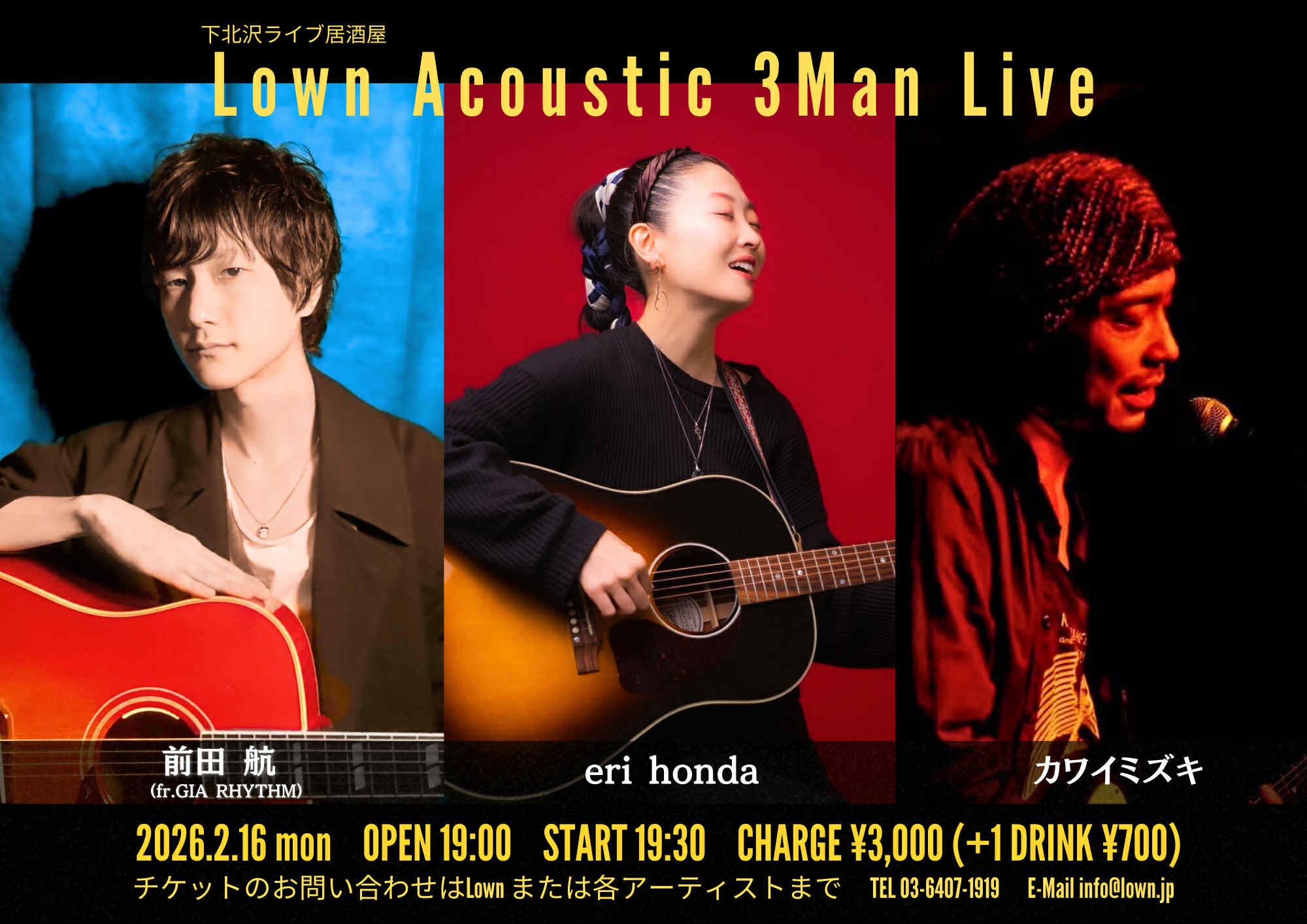 『 川井瑞樹/eri honnda/前田航』 open 19:00 start 19:30 |