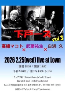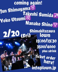 『下山淳/澄田健/内海洋子/篠奈々子』 open 19:00 start 19:30 |