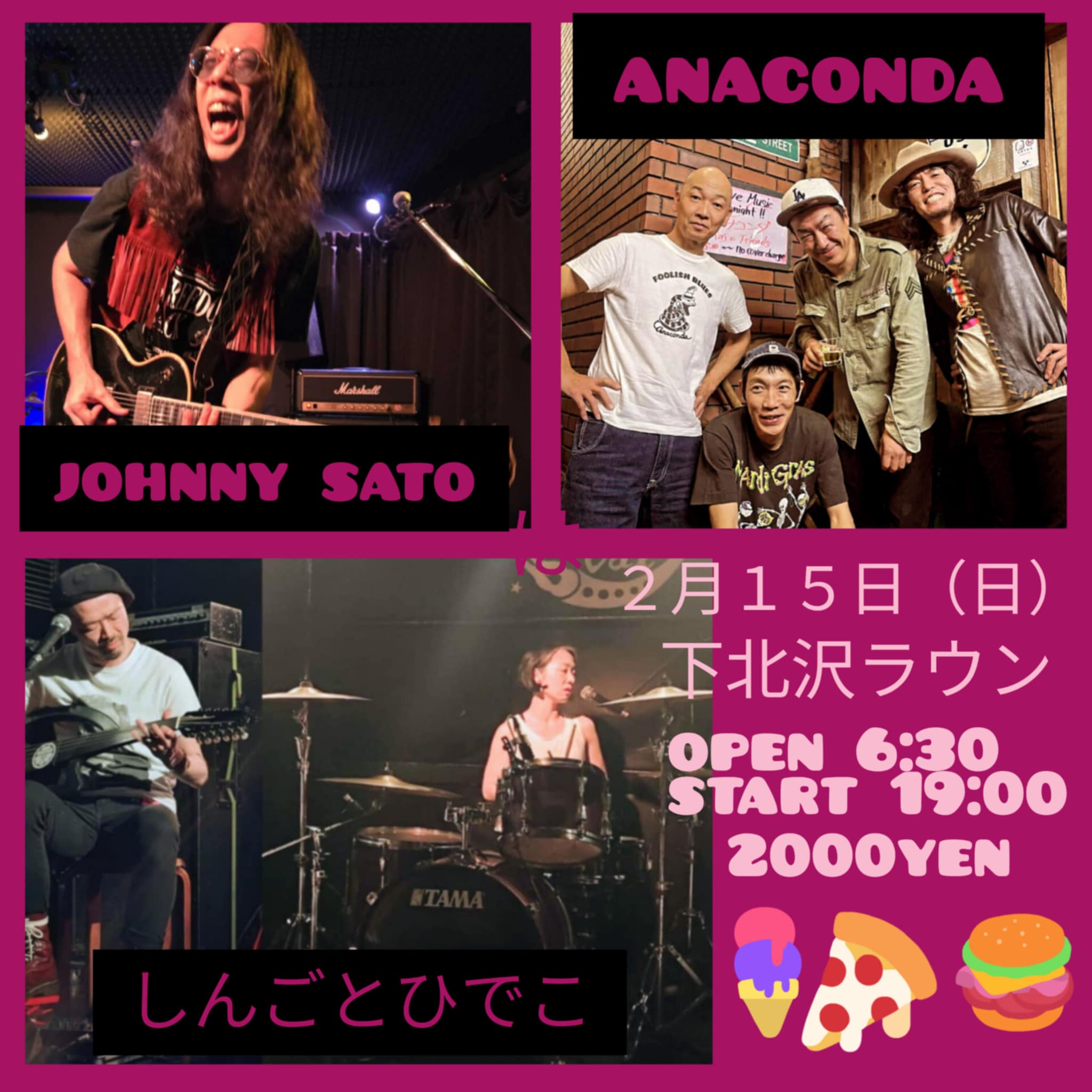 『Anaconda/しんごとひでこ/JOHNNY SATO』 open 18:30 start 19:00 |